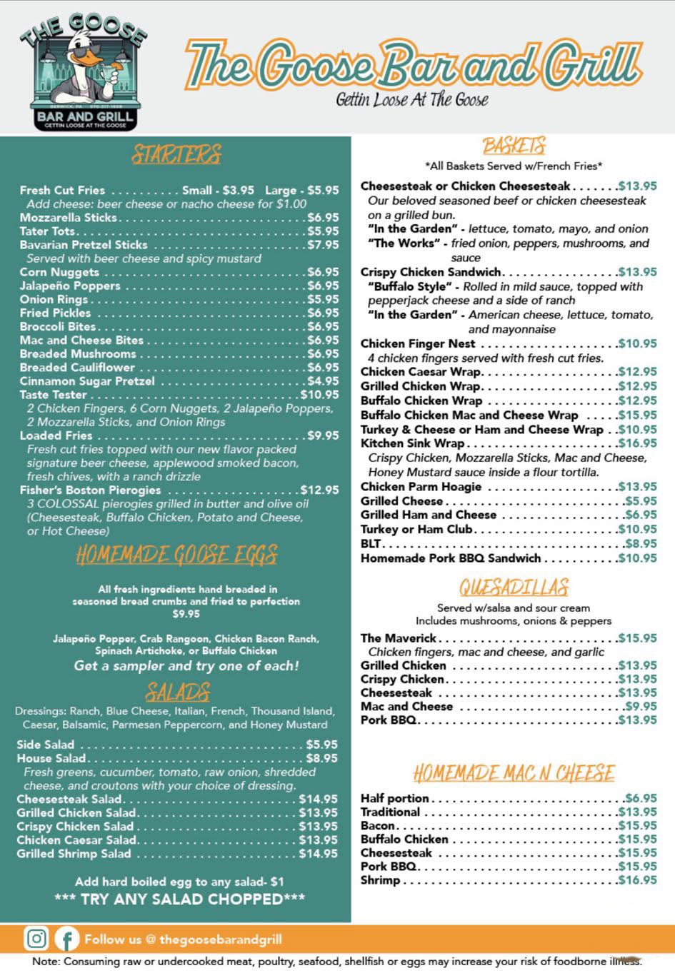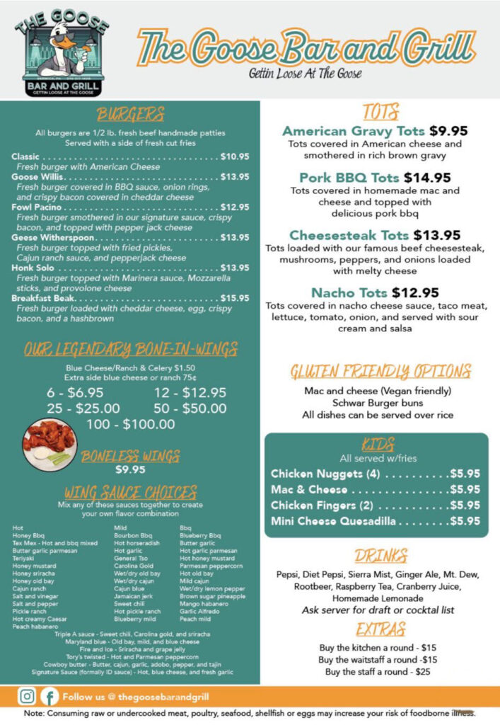 Our Dining Options Click Menu image to enlarge (opens in a new page) For a downloadable version of our menu, please click here!
