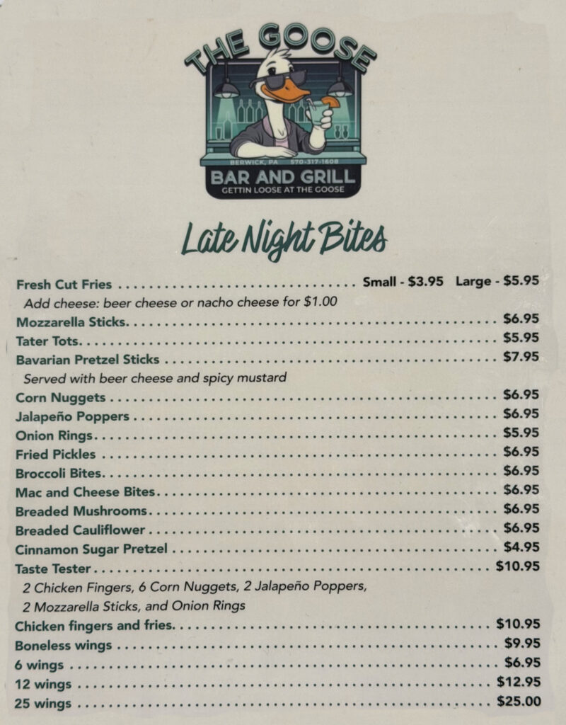 Late night dining Come visit us Friday nights when you’re craving some of our amazing menu items! Click Menu image to enlarge (opens in a new page)